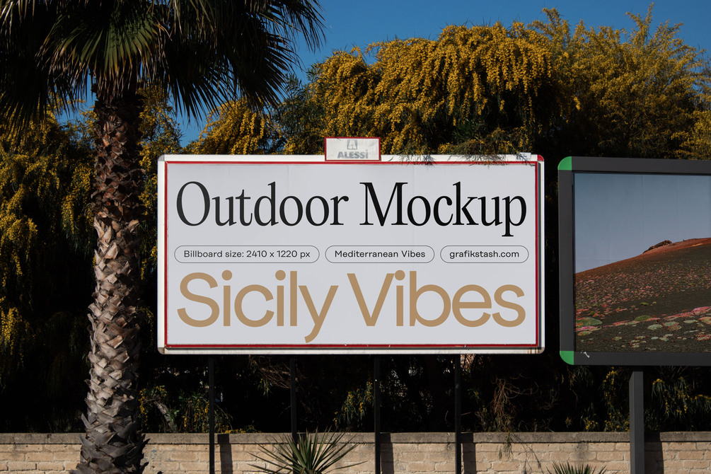Bring the Mediterranean vibes to your project with this beautiful billboard mockup, shot on the beautiful island of Sicily, in Italy.