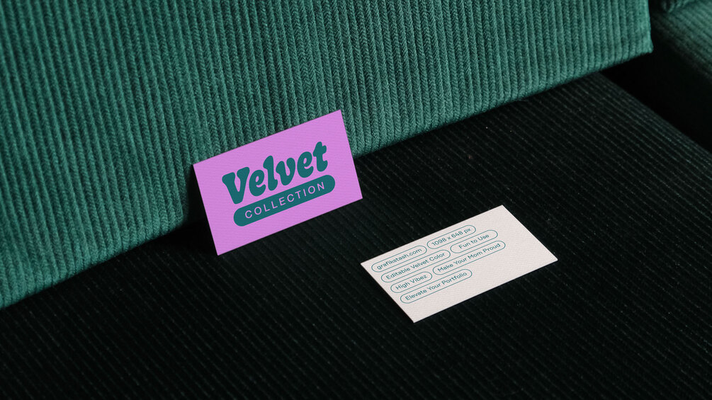 Premium business card mockup for showcasing your branding and illustration projects. The rich velvet textures will elevate any design portfolio and presentations, adding a touch of finesse to your work.