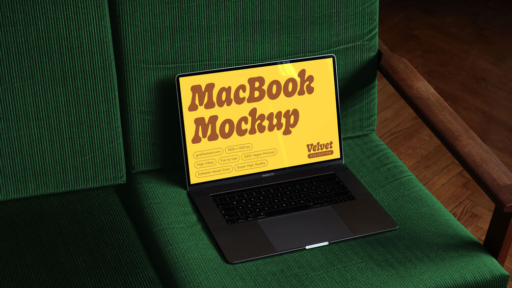 Premium MacBook Pro mockup for showcasing your branding, illustration and web design projects. The rich velvet textures will elevate any design portfolio and presentations, adding a touch of finesse to your work.